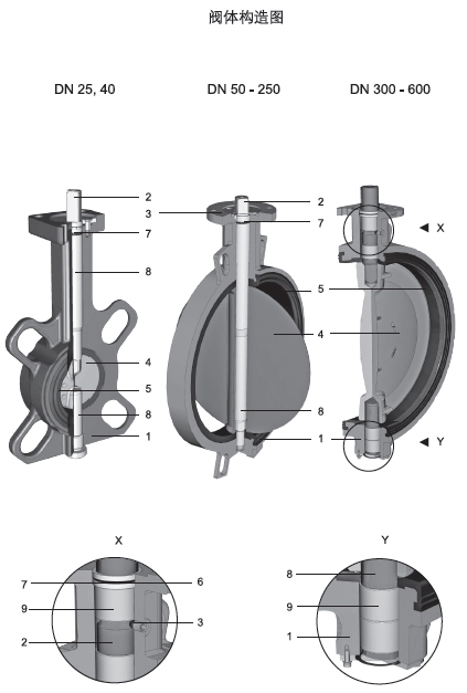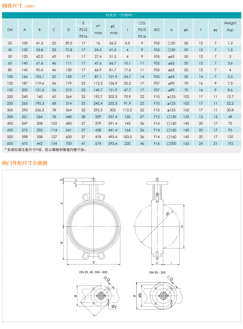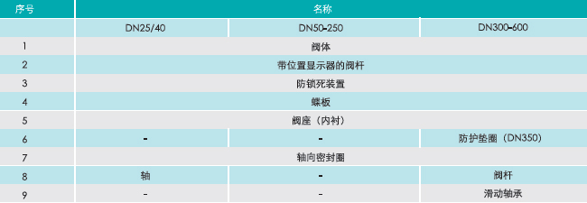 結構: 模塊化結構 安裝長度符合ISO5752/20標準 通過多樣的材料選擇實現通用性 頂端平臺連接符合ISO5211標準 泄漏測試標準有EN 12266-1/P12 泄露率A 蝶閥安全要求遵循歐洲壓力設備97/23/EC管理條例 密封件采用特殊的幾何形狀設計,可滿足更大通徑閥門的安全密封性 優點: 扭矩小 安裝方便 連接方式多樣 溫度和壓力范圍廣 全面符合最新國際規范 更多的適用規格和更高的性價比 技術參數: 閥類: 襯膠蝶閥 閥體材質: GGG40 工作壓力: 0-16 bar 最高工作溫度℃: 150 ° C 通徑范圍DN : 25-600